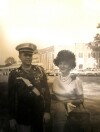 Jim with Mom, Carolyn Sims after hot Sunday parade “pass and review” |